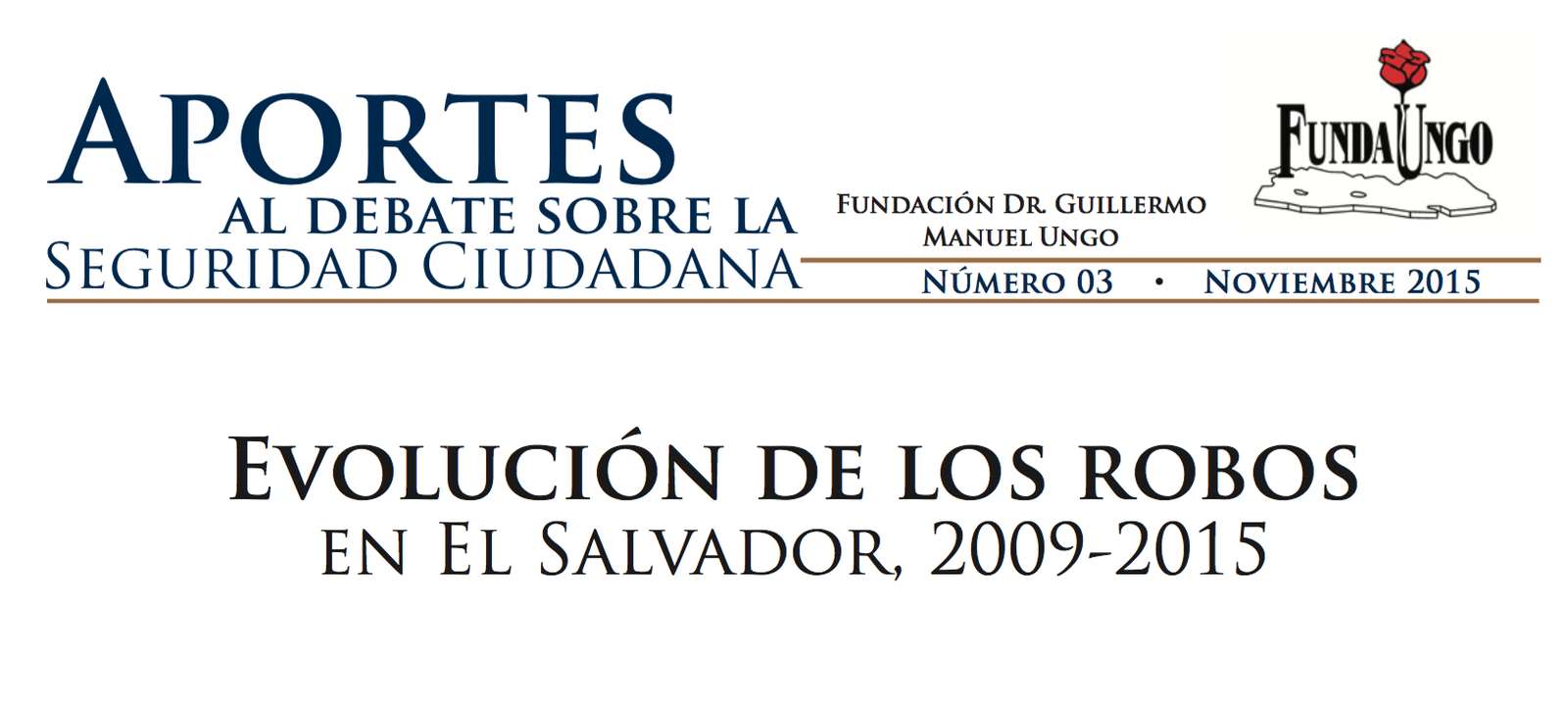 En 2012 se publicó el "Atlas de la violencia en El Salvador (2005-2011)", en el que se presentaron estadísticas sobre los principales delitos contra el patrimonio para el periodo 2007-2011. En "Evolución de los robos en El Salvador, 2009-2015" se presentan datos para el periodo 2009-2014 y, en la medida que la información ha estado disponible, se han actualizado algunos cuadros y gráficos con información correspondiente a junio de 2015. Esta investigación contó con el apoyo financiero de la Iniciativa Think Tank y la Fundación Heinrich Böll.